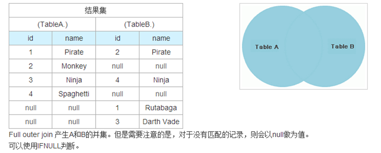 RIGHT OUTERJOIN 是后面的表为基础,与LEFT OUTER JOIN用法类似。这里不介绍了。